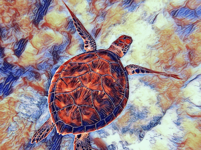 Several websites such as Pixabay and Pexels offer royalty-free stock images that you can download and use for your own projects. Of course, it is highly appreciated when you offer the artist a donation and/or include a reference to the artist in your creation. Sometimes a free account is needed to be able to download the image. For a large version of the image, a premium account is needed. But the smaller image sizes usually have a good enough quality to be used in your design projects. The Art-filter effects tend to be most amazing when you use images with clear colors and shapes. For this example, an image of a turtle (found on Pixabay) was used, downloaded in the dimensions 1280 x 960. The image is often saved in your downloads folder.